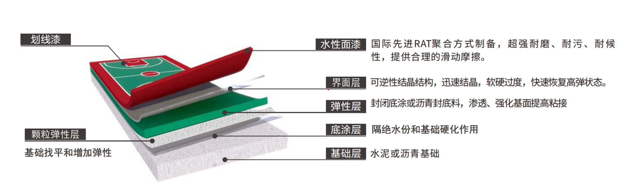 ?溶劑型硅PU球場(chǎng)材料由陶?聚氨酯組成,綠?環(huán)保?毒?味,?產(chǎn)施?過(guò)程?異味。?命性的技術(shù)創(chuàng)新,克服了傳統(tǒng)硅PU球場(chǎng)材料的刺激性?味,?傳統(tǒng)球場(chǎng)材料更環(huán)保耐?,還可以根據(jù)不同的球場(chǎng)來(lái)調(diào)節(jié)材料的彈性和硬度,順應(yīng)時(shí)代發(fā)展,給學(xué)?及運(yùn)動(dòng)愛(ài)好者?個(gè)綠?的天堂。